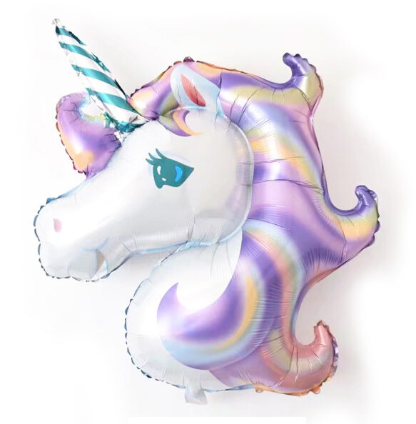 "Τεράστιο μπαλόνι κεφάλι Μονόκερος με λιλά χαίτη, για μία εντυπωσιακή διακόσμηση στο πάρτι ή τη βάπτιση!