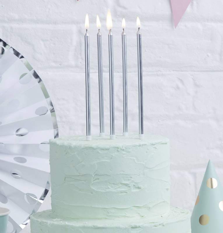Ψηλά Κεράκια τούρτας Ασημί για την πιο όμορφη και εντυπωσιακή τούρτα γενεθλίων!!