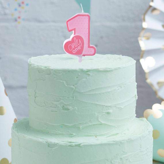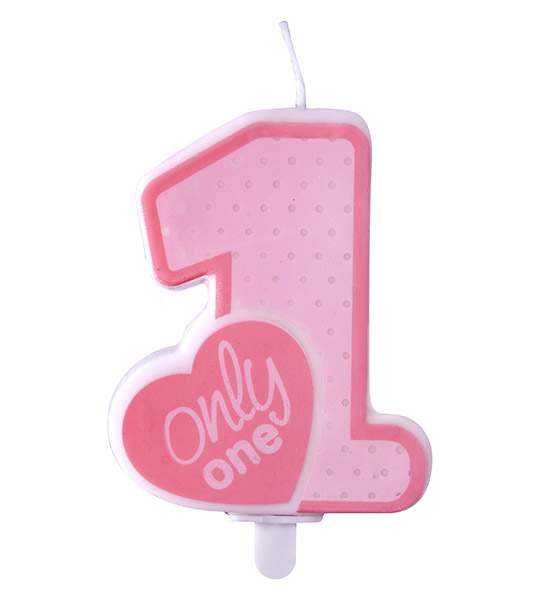 Κεράκι γενεθλίων '1' only one ροζ για τα πρώτα γενέθλια της μικρής σας!