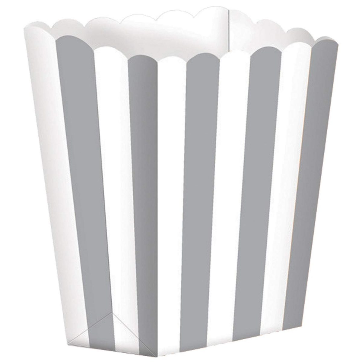 "Χάρτινο Ασημί κουτί Ποπ Κορν με ρίγες, για τη διακόσμηση του μπουφέ στο πάρτυ, τη βάπτιση ή την εκδήλωση!