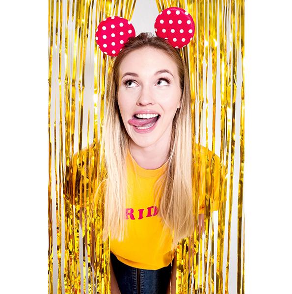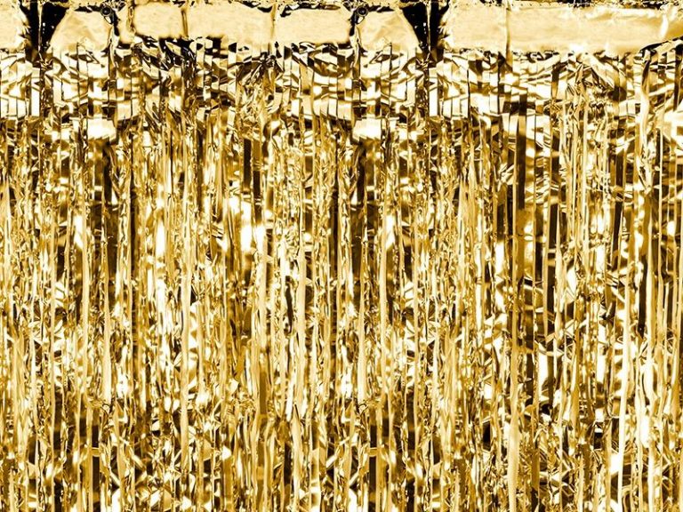 Χρυσή κουρτίνα από foil, για τη διακόσμηση του event.