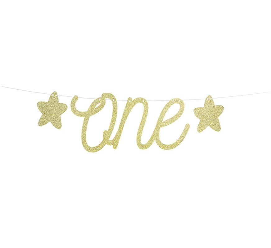 "Διακοσμητική γιρλάντα One χρυσό με γκλίτερ, για να διακοσμήσετε τα πρώτα γενέθλια του μωρού σας!