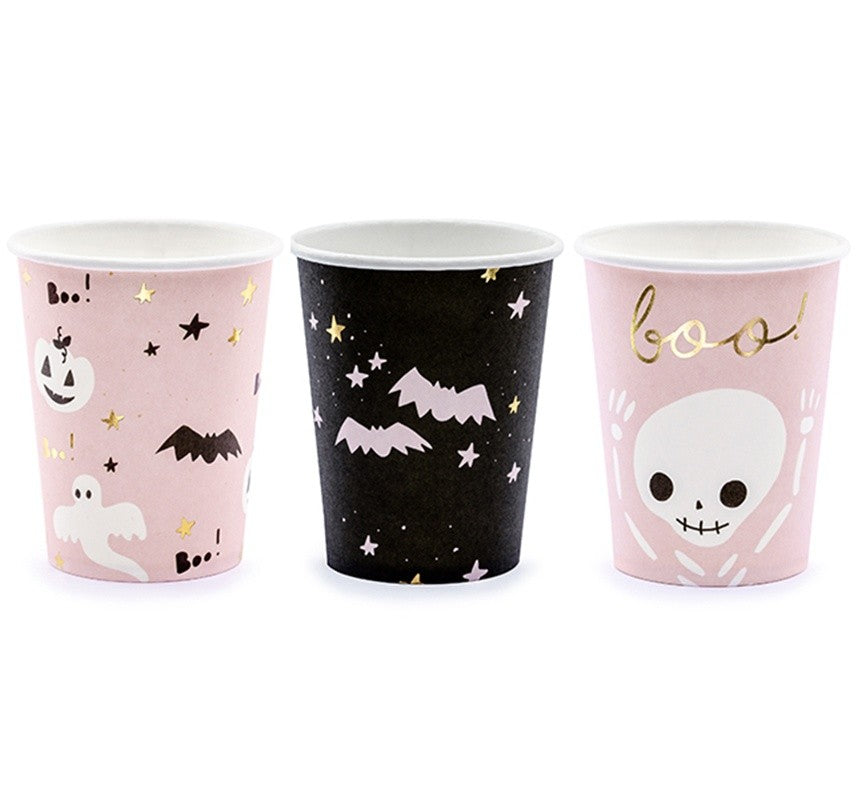 "Ποτήρια για το τραπέζι του Halloween πάρτι, με χαριτωμένα φαντασματάκια και νυχτερίδες!