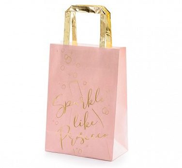 "Σακούλες για δωράκια σε ροζ χρώμα με χρυσή μεταλλική εκτύπωση.