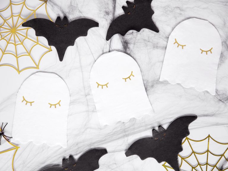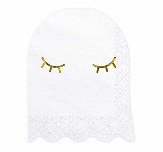 "Σχηματικές χαρτοπετσέτες Φαντασματάκι με χρυσές ανάγλυφες βλεφαρίδες, για το τραπέζι του πάρτυ.