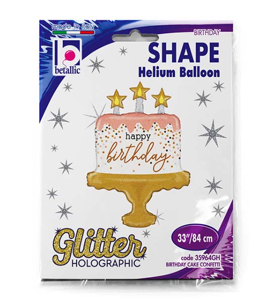 "Μπαλόνι τούρτα Happy Birthday με κομφετί 84 εκ για μια ξεχωριστή διακόσμηση πάρτυ ή για ένα μοναδικό δώρο για να ευχηθείτε 'Χρόνια Πολλά'
