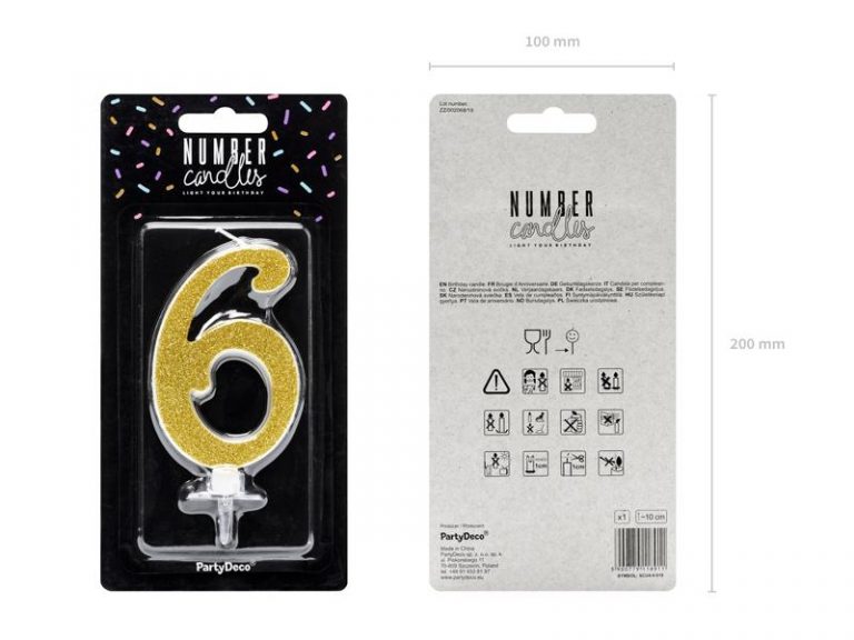 "Κεράκι γενεθλίων με χρυσό γκλίτερ Αριθμός 6