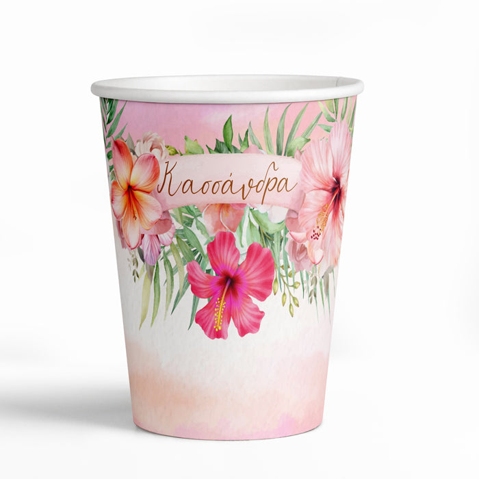 Ποτηράκια με το όνομα του μικρού σας και θέμα Tropical Ιβίσκος, για να κεράσετε τους καλεσμένους σας στο τραπέζι του πάρτυ ή της βάπτισης!