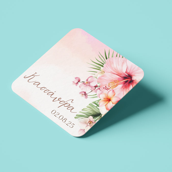 Σουβέρ από φελλό Tropical Ιβίσκος! Χρησιμοποίησε αυτό το σουβέρ ως ενθύμιο δώρο στην μπομπονιέρα της βάπτισης και εντυπωσίασε!