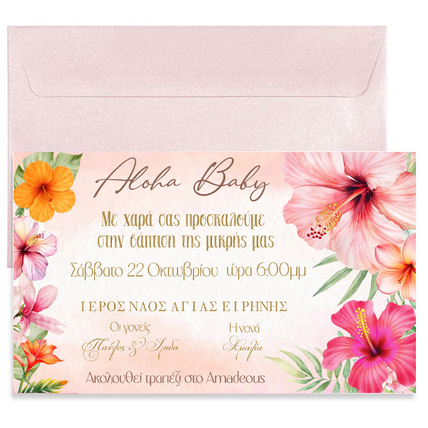 Προσκαλέστε τα αγαπημένα σας άτομα στην βάπτιση του μωρού σας με προσκλητήριο στο πιο γλυκό θέμα Tropical Ιβίσκος!