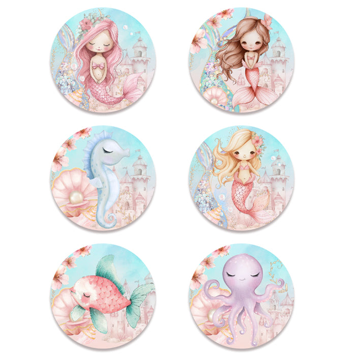 Σετ κονκάρδες με σχέδιο Ροζ Γοργόνα (6 τεμ)! Φορέστε τις στο πάρτυ γενεθλίων, στη θεματική βάπτιση ή διακοσμήστε τα αγαπημένα σας αντικείμενα!