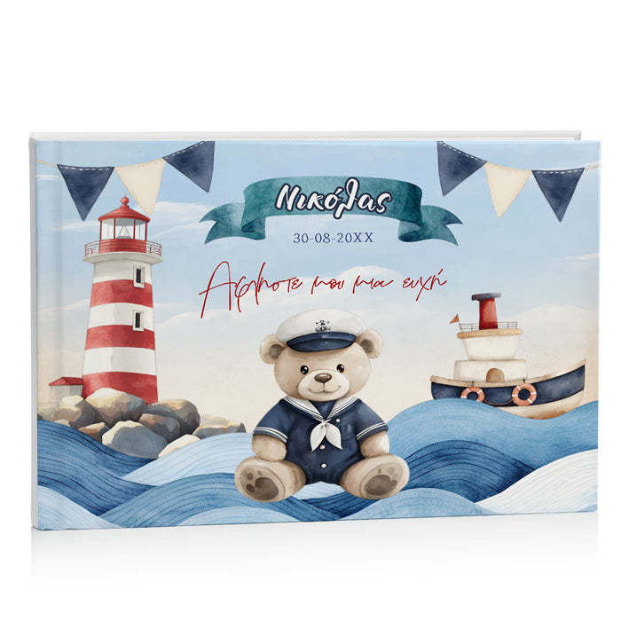 Εντυπωσιακό, χειροποίητο Βιβλίο Ευχών με θέμα Ναυτικό Αρκουδάκι για τη Βάπτιση του μωρού σας! Κρατήστε για πάντα τις ευχές των καλεσμένων σας σε ένα όμορφο ευχολόγιο.