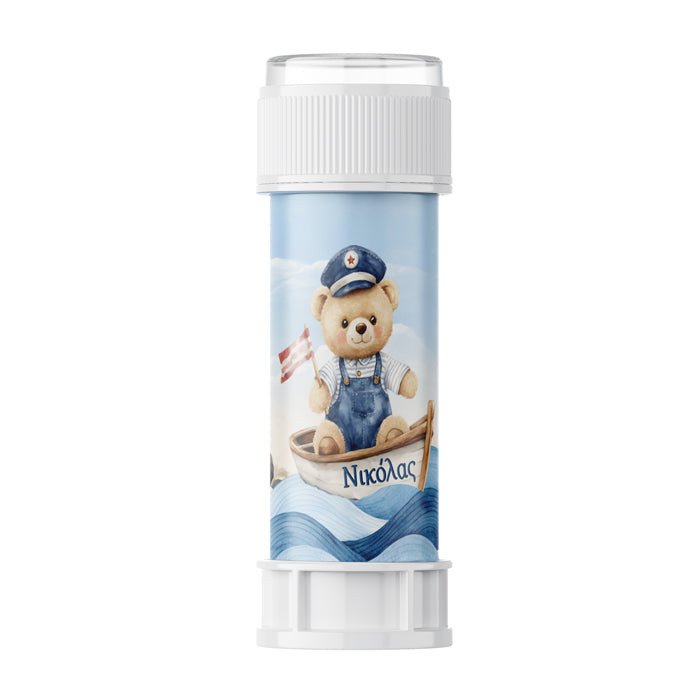 Προσωποποιημένες σαπουνόφουσκες με θέμα Ναυτικό Αρκουδάκι για να χαρίσετε ως δωράκι στα παιδάκια της βάπτισης ή ή για να τις φτιάξετε ως μπομπονιέρα.