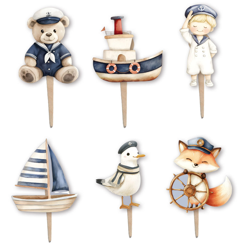 Topper-Οδοντογλυφίδες για να στολίσετε τα φαγητά και τα γλυκά του πάρτι ή της βάπτισης, με θέμα Ναυτικό Αρκουδάκι!