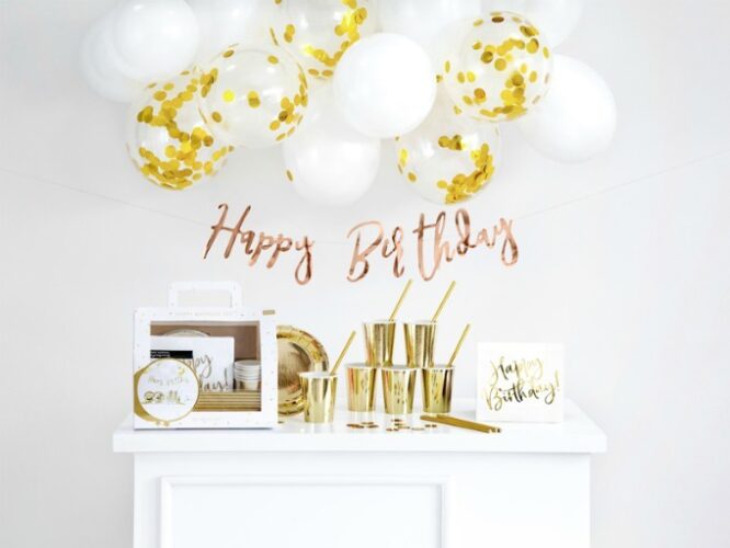 Διακοσμητικό Σετ για πάρτυ γενεθλίων, με χρυσά στοιχεία που ταιριάζουν σε πολλές περιστάσεις.