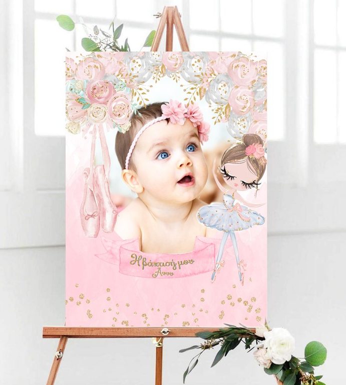 Διακοσμήστε το χώρο της βάπτισης και υποδεχθείτε τους καλεσμένους σας, με καμβά σε θέμα Μπαλαρίνα και εκτυπωμένη τη φωτογραφία του μωρού σας!