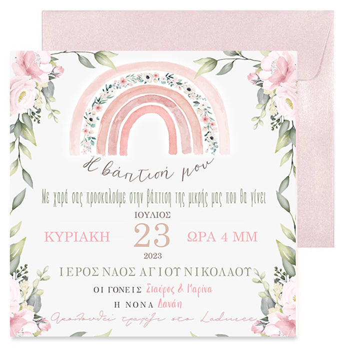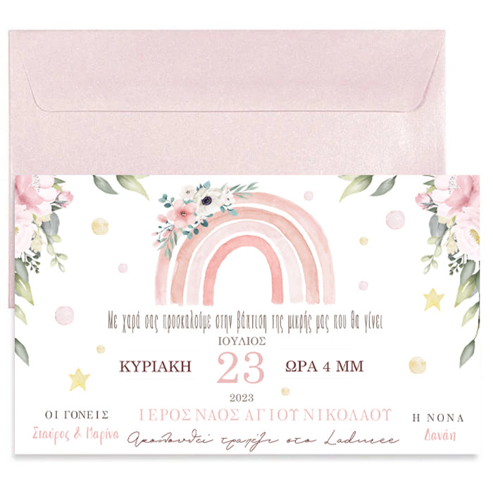 Προσκλητήριο Βάπτισης με θέμα Ουράνιο Τόξο κορίτσι, για να μοιράσετε στους αγαπημένους σας για τη βάπτιση τη μικρής σας.