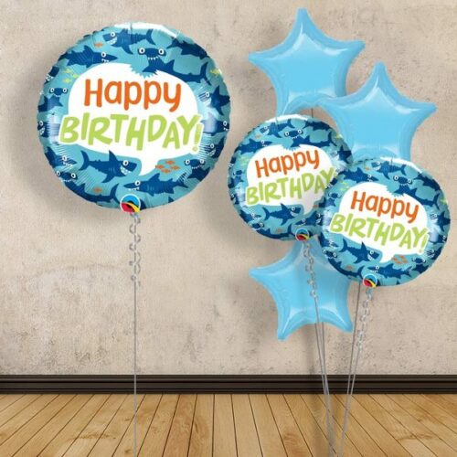 Στρογγυλό μπαλόνι Γενεθλίων με σχέδιο καρχαριάκια, για μια μοναδική διακόσμηση πάρτυ ή για να ευχηθείτε χρόνια πολλά!