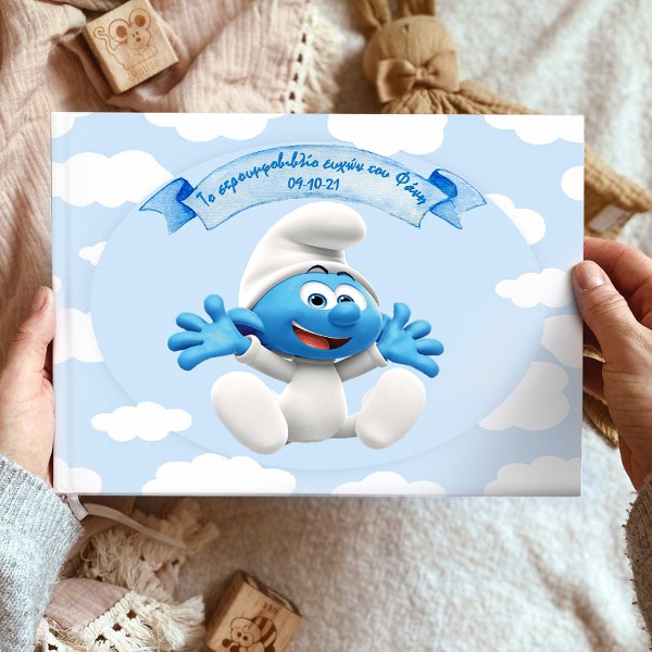 Εντυπωσιακό Βιβλίο Ευχών με θέμα τα Στρουμφάκια, για τη Βάπτιση του μωρού σας! Κρατήστε για πάντα τις ευχές των καλεσμένων σας σε ένα όμορφο ευχολόγιο.