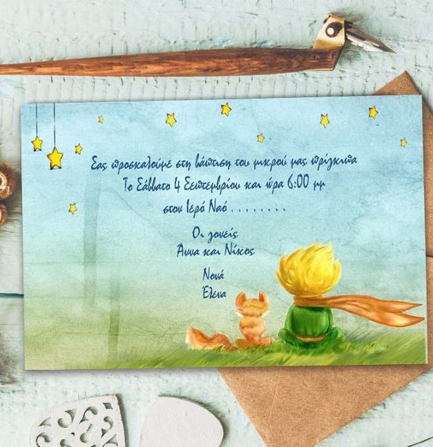 Προσκαλέστε τα αγαπημένα σας άτομα στη βάπτιση του μικρού σας Πρίγκιπα με προσκλητήριο Little Prince με φάκελο!