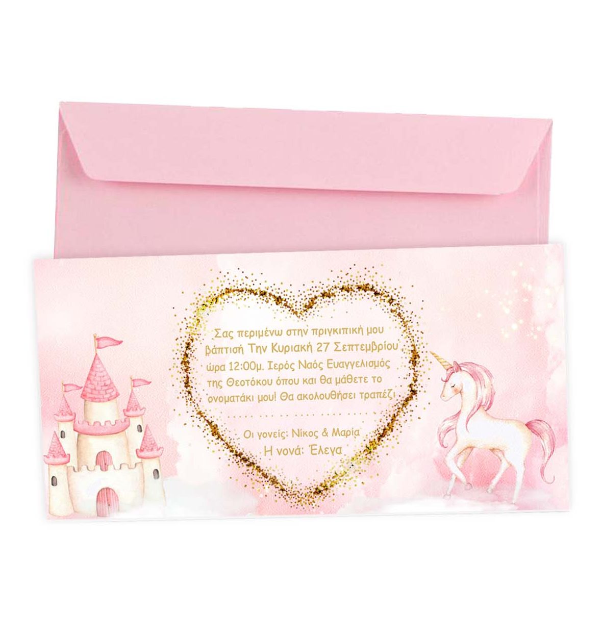 Προσκλητήριο με θέμα Πριγκίπισσα & Μονόκερος, για να καλέσετε τα αγαπημένα σας άτομα στη βάπτιση του μωρού σας!
