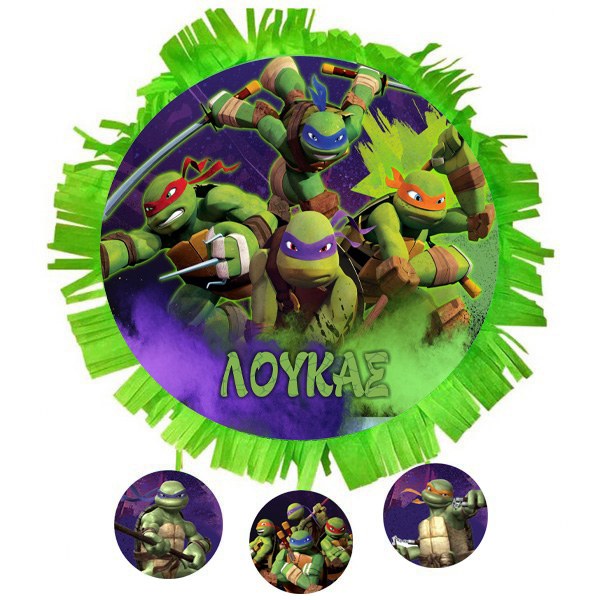 • Από την πινιάτα κρέμονται 3 στρογγυλά διακοσμητικά από χαρτόνι με τύπωμα στο θέμα της πινιάτας