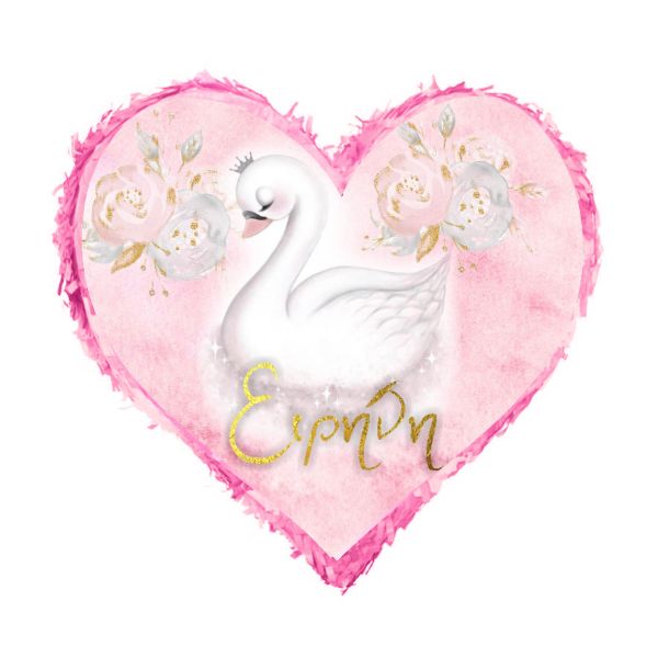 Πινιάτα σε σχήμα καρδιάς με όμορφο Κύκνο, για το πάρτυ γενεθλίων!