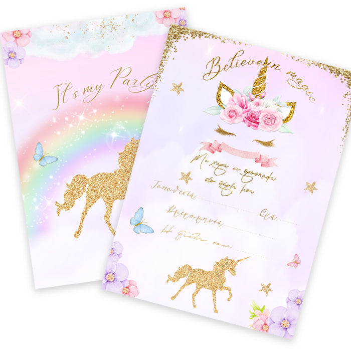 ΣυσκευασίαΠροσκαλέστε τους αγαπημένους σας φίλους σε ένα μαγικό πάρτυ, με ένα εντυπωσιακό προσκλητήριο με φλοράλ Μονόκερο!