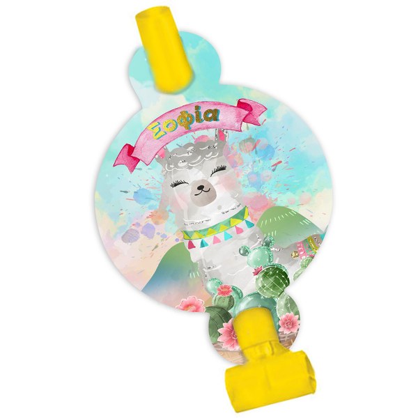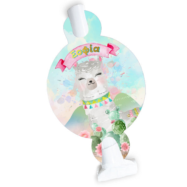 Προσωποποιημένα Blowouts με θέμα Λάμα & Κάκτος, για να μοιράσετε στους καλεσμένους του πάρτυ σας και να τους βάλετε σε γιορτινή διάθεση!