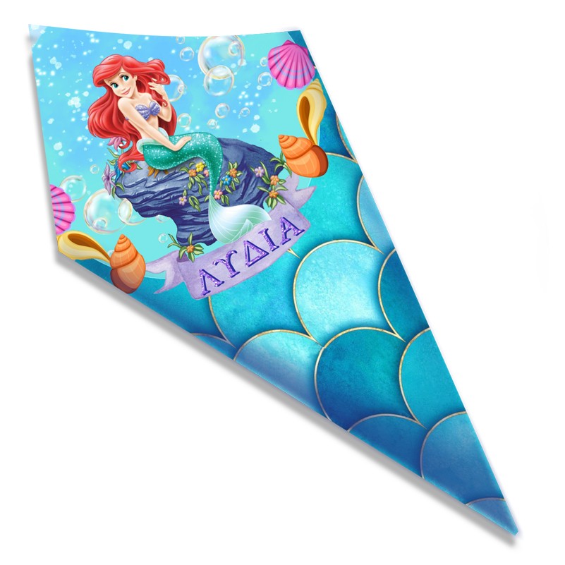 Χάρτινα χωνάκια πάρτυ για ζαχαρωτά ή σνακ με τη Μικρή γοργόνα. Δώσε σε κάθε αγαπημένο σου πρόσωπο που έχεις καλέσει στο πάρτυ ώστε να δοκιμάσει από τις λιχουδιές σου!