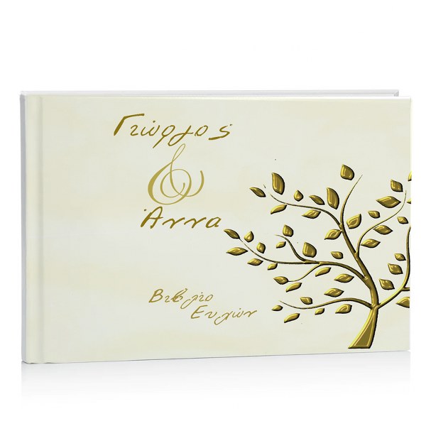 Βιβλίο Ευχών για την ημέρα του γάμου με τα αρχικά και την ημερομηνία των νεόνυμφων. Κρατήστε για πάντα τις ευχές των καλεσμένων σας σε ένα όμορφο ευχολόγιο.