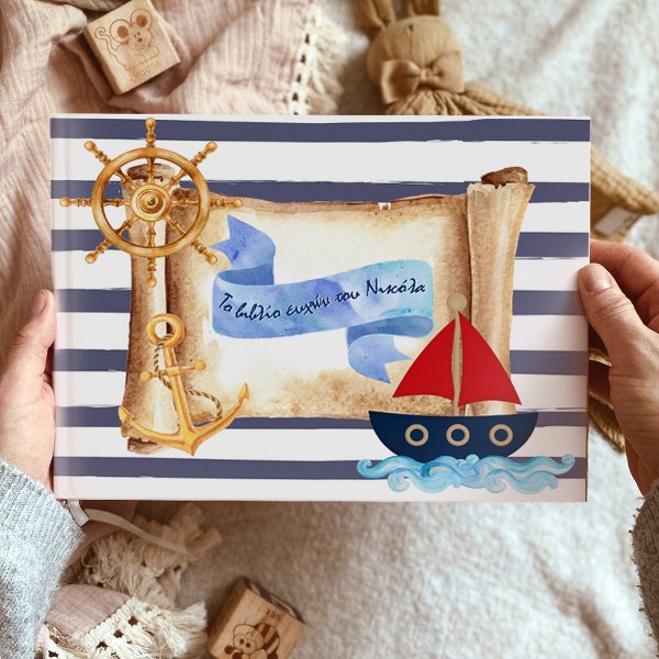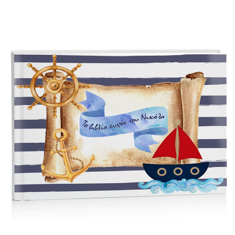 Εντυπωσιακό, χειροποίητο Βιβλίο Ευχών με Ναυτικό θέμα, για τη βάπτιση του μωρού σας! Κρατήστε για πάντα τις ευχές των καλεσμένων σας σε ένα όμορφο ευχολόγιο.