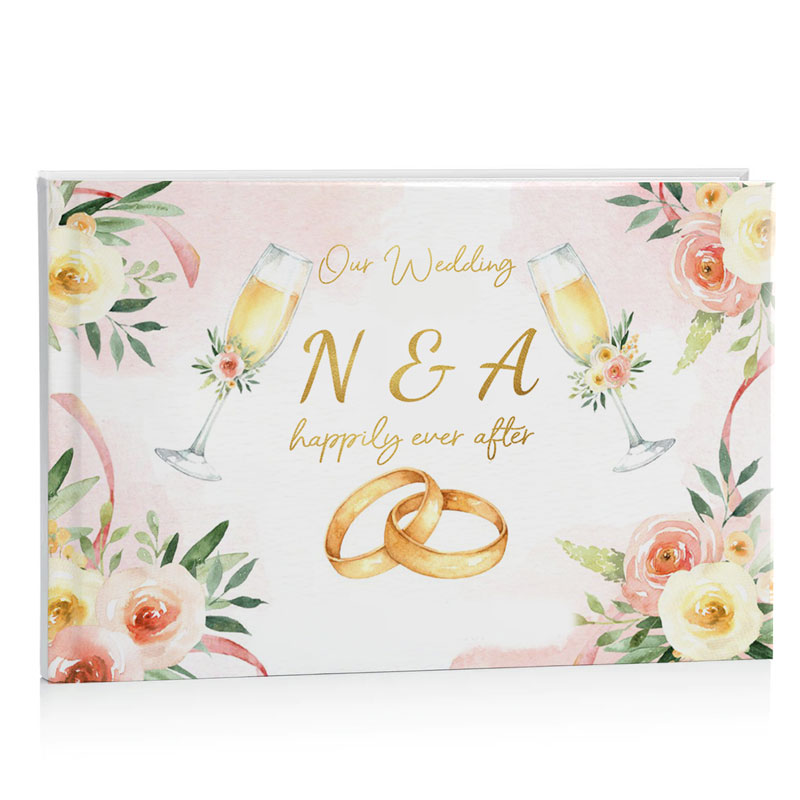 Βιβλίο Ευχών για την ημέρα του γάμου, με τα αρχικά των νεόνυμφων. Κρατήστε για πάντα τις ευχές των καλεσμένων σας σε ένα όμορφο ευχολόγιο.