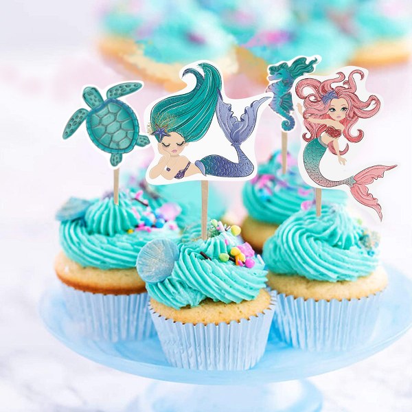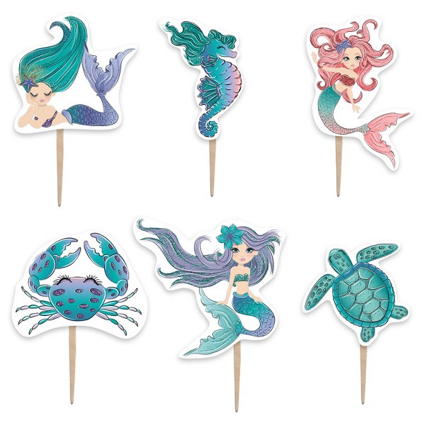 Topper-Οδοντογλυφίδες για να στολίσετε τα ζαχαρωτά και τα cupcake του μπουφέ με θέμα τη Γοργόνα.