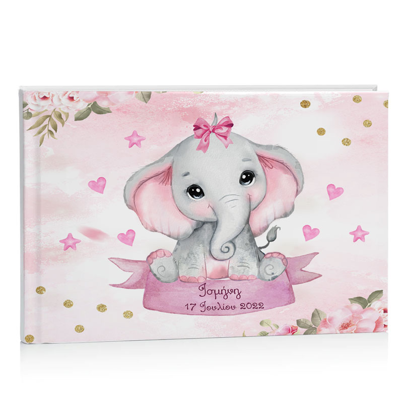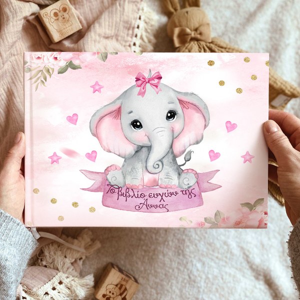 Εντυπωσιακό, χειροποίητο Βιβλίο Ευχών με θέμα χαριτωμένο ελεφαντάκι, για τη Βάπτιση του μωρού σας! Κρατήστε για πάντα τις ευχές των καλεσμένων σας σε ένα όμορφο ευχολόγιο.