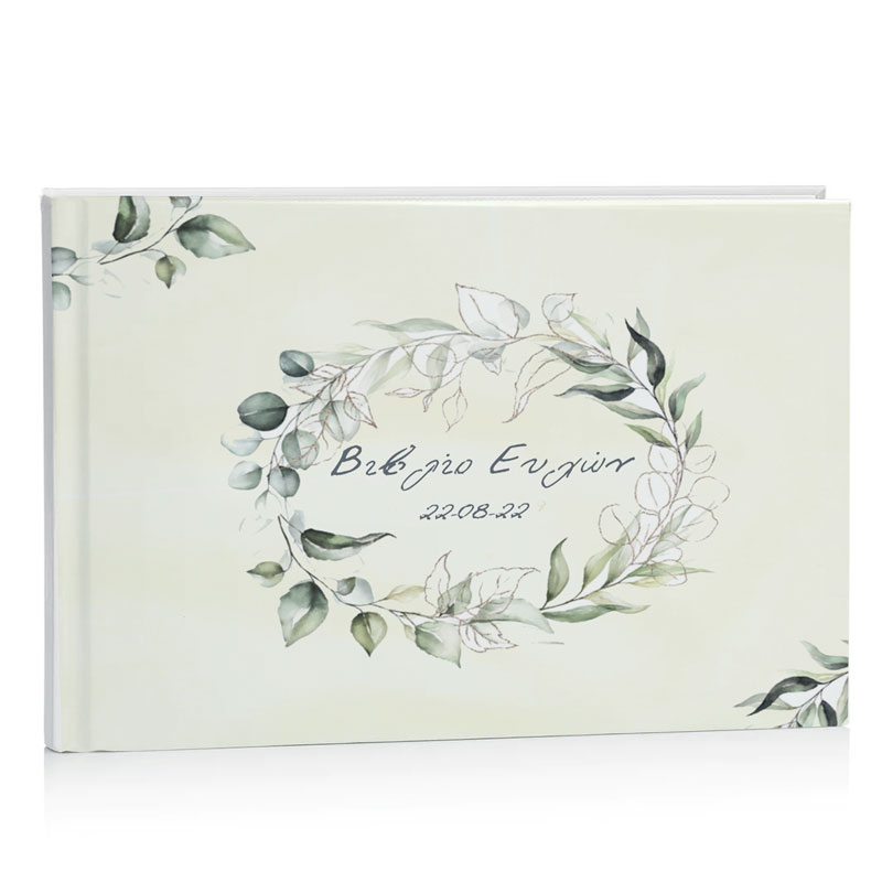 Χειροποίητο & προσωποποιημένο βιβλίο ευχών με σχέδιο Στεφάνι Ελιάς για να μείνουν ανεξίτηλες οι πιο θερμές ευχές των καλεσμένων σας.