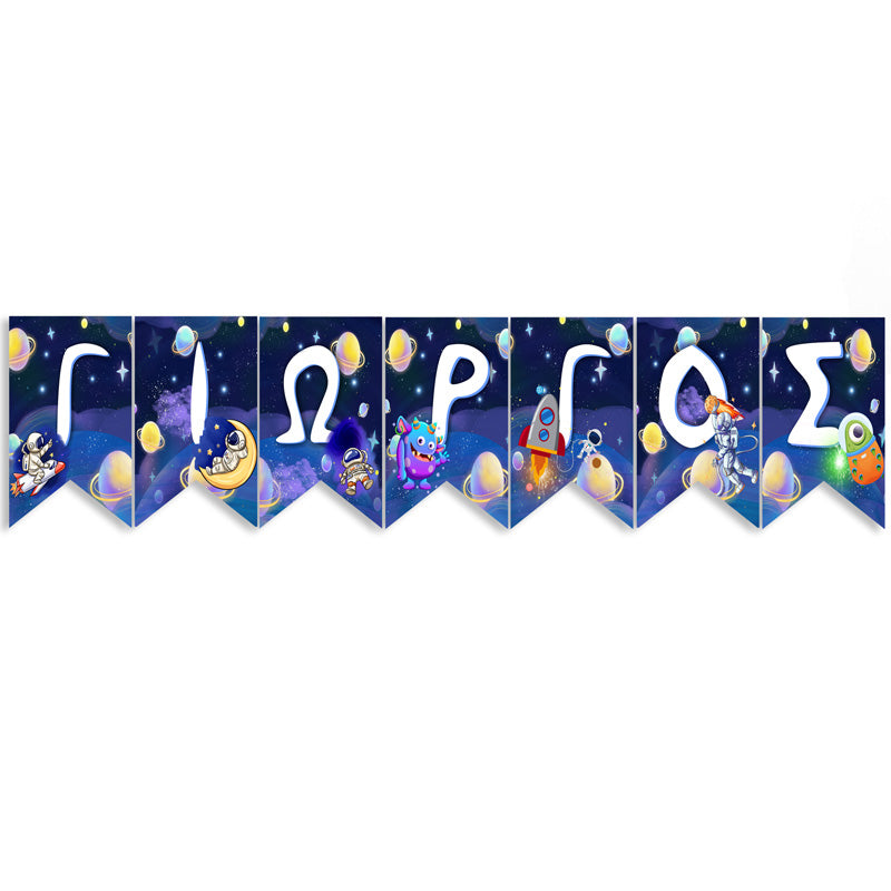 Διακοσμητικά σημαιάκια με το όνομα του παιδιού και θέμα το Διάστημα!