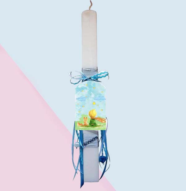 - Το διακοσμητικό της λαμπάδας είναι ξύλινος τυπωμένος Μικρός Πρίγκιπας.