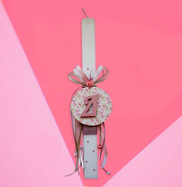 Χειροποίητη πασχαλινή λαμπάδα με το αρχικό από το όνομα και σχέδιο φλοράλ!