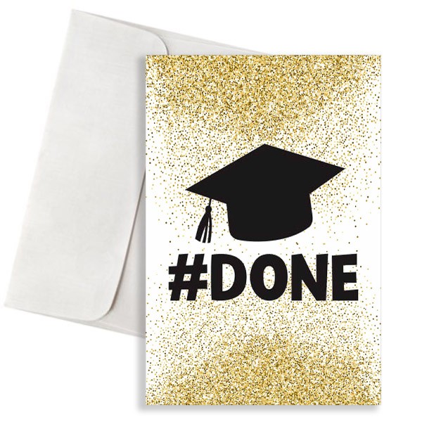 Ευχετήρια Κάρτα για Αποφοίτηση "DONE". Xαρίστε μαζί με τα μπαλόνια αποφοίτησης, μια πρωτότυπη καρτούλα για να γράψετε τις ευχές σας και ευχηθείτε καλή σταδιοδρομία στο δικό σας απόφοιτο!