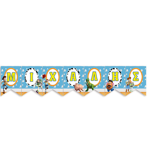 Διακοσμητικά σημαιάκια με το όνομα του παιδιού και θέμα την παρέα από το Toy Story!