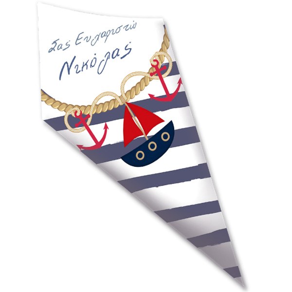 Στολίστε το candy bar ή το τραπέζι, με προσωποποιημένα χωνάκια ζαχαρωτών με ναυτικό θέμα Καραβάκι & Άγκυρα, για να κεραστούν οι καλεσμένοι σας!