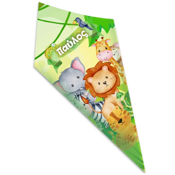 Στολίστε το candy bar ή το τραπέζι, με προσωποποιημένα χωνάκια ζαχαρωτών με θέμα ζωάκια της ζούγκλας για να κεραστούν οι καλεσμένοι σας!