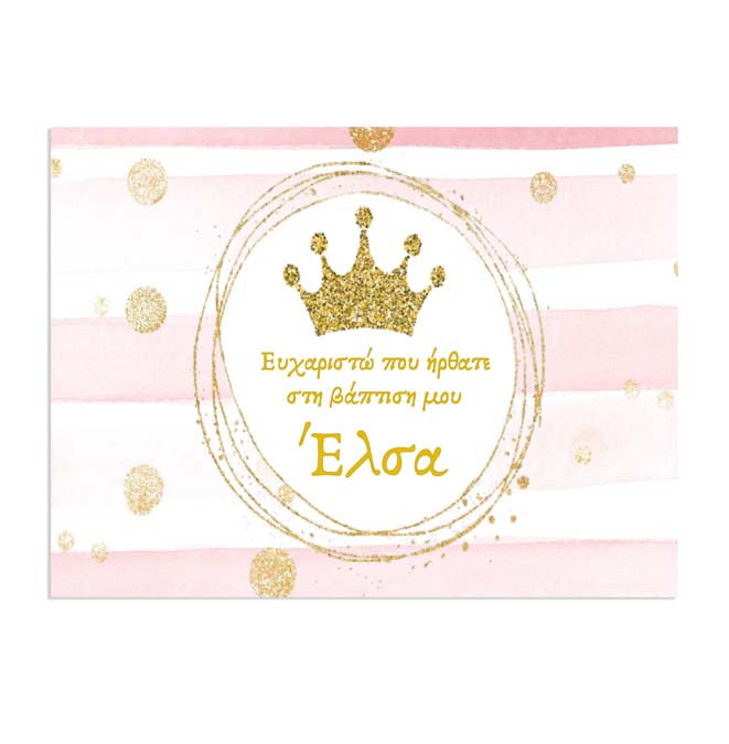 Προσωποποιημένο καρτελάκι με θέμα χρυσή κορώνα, για να ευχαριστήσετε τους καλεσμένους σας που παρευρέθηκαν σ' αυτή τη σημαντική στιγμή!