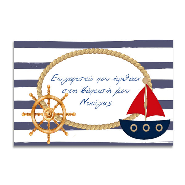 Ευχαριστήριο καρτάκι για τους καλεσμένους της βάπτισης με Ναυτικό θέμα. Διακοσμήστε το μπουφέ ή τα δωράκια των καλεσμένων!