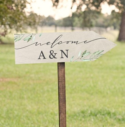 Πινακίδα σε σχήμα βέλους με τα μονογράμματα του ζευγαριού, για να υποδεχθείτε τους καλεσμένους στο γάμο σας!