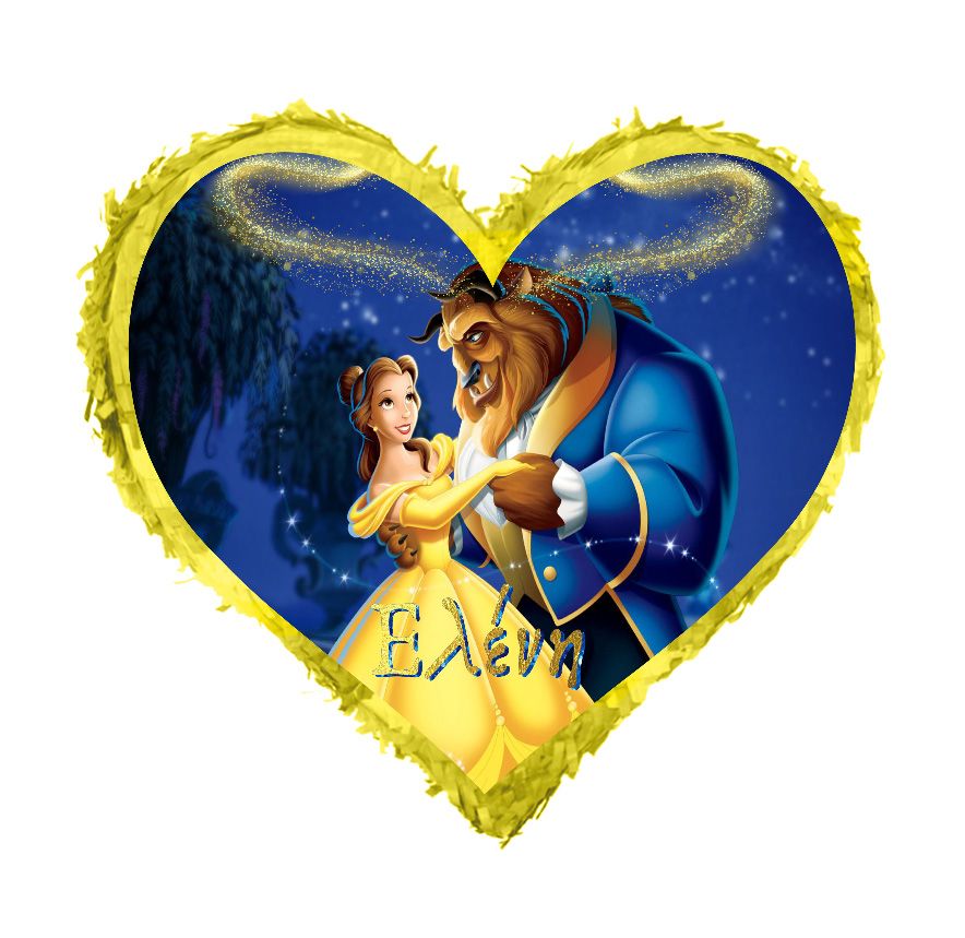 Πινιάτα σε σχήμα καρδιάς με την Πεντάμορφη και το Τέρας!