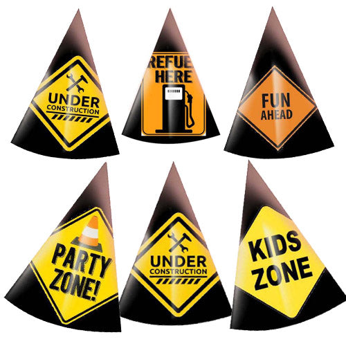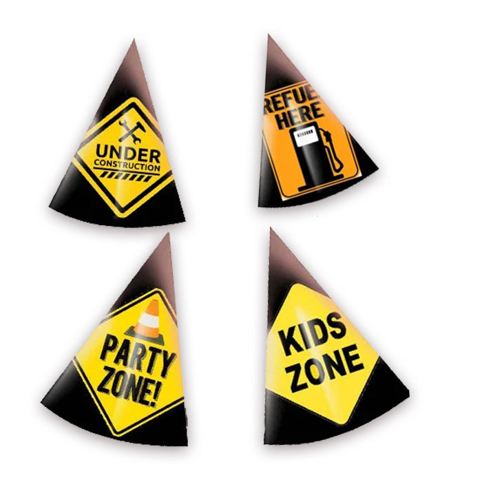Καπελάκια Under Construction σε 4 διαφορετικά σχέδια για να φορούν οι μικροί καλεσμένοι στο πάρτυ!