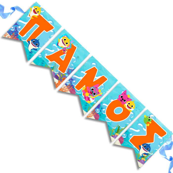 Διακοσμητικά σημαιάκια με το όνομα του παιδιού και θέμα τα αγαπημένα Καρχαριάκια!
