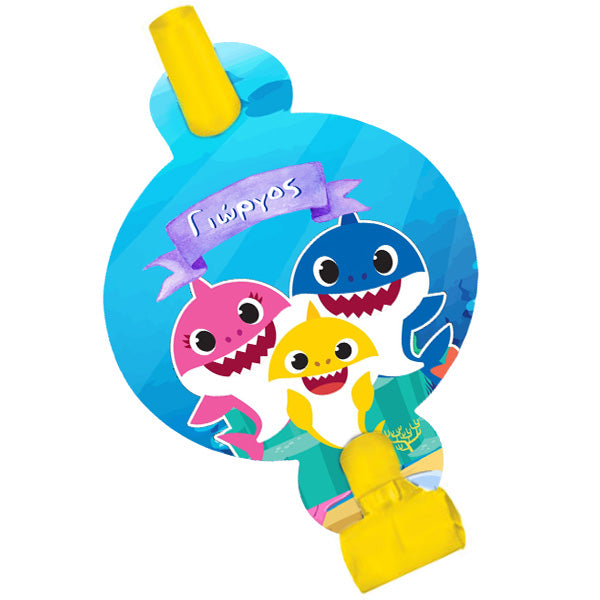 Προσωποποιημένα Blowouts με θέμα Baby Shark, για να μοιράσετε στους καλεσμένους του πάρτυ σας και να τους βάλετε σε γιορτινή διάθεση!